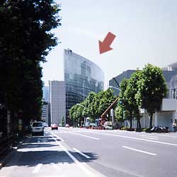 矢印が、ガラス棟。